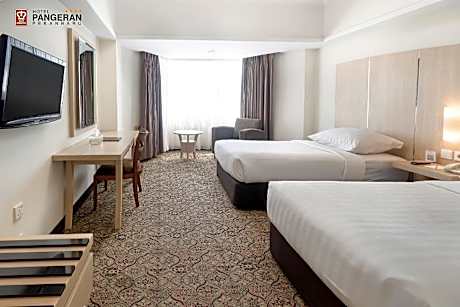At Hotel Pangeran, exceptional service and top-notch amenities create a memorable experience for guests.Complimentary internet access is available in the hotel to ensure you stay connected during your visit.Arrange your trips to and from the airport using the hotel's convenient transportation services booking.Discover the wonders of Pekanbaru with ease by utilizing the services provided by taxi, car hire and shuttle. Continuously receive the support you require through front desk amenities such as concierge service, express check-in or check-out, luggage storage and safety deposit boxes. Always look your best in your preferred attire with the dry cleaning service and laundry service provided at Hotel Pangeran.Craving relaxation? In-room amenities such as 24-hour room service, room service and daily housekeeping allow you to maximize your time spent inside the room.For the health and well-being of all guests and staff, smoking is restricted exclusively to assigned zones. Accommodations come equipped with all the conveniences required for a restful night's slumber. A selection of rooms at Hotel Pangeran come furnished with air conditioning to cater to your needs and comfort. A few chosen rooms are equipped with daily newspaper, television, in-room video streaming and cable TV to ensure guest amusement.In certain rooms, the hotel offers visitors access to a refrigerator, bottled water, a coffee or tea maker and mini bar. Hotel Pangeran offers a hair dryer and bathrobes in the restrooms of specific accommodations. All adore a delightful cup of coffee! An on-site coffee shop ensures you can relish a cup of authentic, freshly-brewed coffee every morning -- or whenever you desire it. Allow your journey to be free from the pangs of hunger! On-site eateries offer delicious and accessible meal choices.An evening spent within the hotel's bar and nightclub may prove to be just as entertaining as venturing out with your fellow adventurers.At Hotel Pangeran, guests can take pleasure in the delightful recreational amenities provided for their entertainment. Conclude your days in complete tranquility by paying a visit to massage, hot tub and steam room for ultimate relaxation. At Hotel Pangeran, a wide array of amenities guarantees a fulfilling experience throughout your visit. Make your holiday truly memorable by taking a rejuvenating plunge into the pool.At Hotel Pangeran, the poolside bar provides an excellent incentive to enjoy extended hours in your swimwear.At the hotel fitness center, you have the option to engage in your daily exercise routine or simply alleviate your jet lag by breaking a sweat.