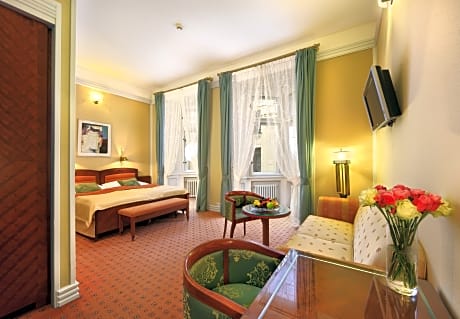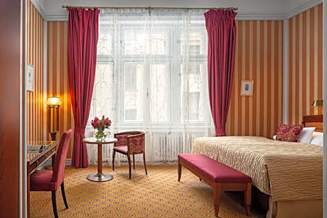 Built in 1904 in Neo-Gothic style with Art Nouveau elements, this 5-star hotel is located opposite the Municipal House and 328 feet away from Prague's Powder Tower. It offers free wellness center access and free Wi-Fi in all areas. All elegant rooms and suites at Hotel Paris are decorated with replicas of original Art Nouveau furniture. They come with flat-screen satellite TV, a mini-bar and air conditioning. The tiled, spacious bathrooms have underfloor heating, hairdryers and toiletries. Tony’s Café & Bar has a charming Parisian atmosphere of the 1920s and it offers delicious international cuisine including Czech specialties. It also serves various sandwiches, desserts, wide range of wines, champagnes, cocktails and bar snacks. Hotel Paris' wellness center includes a massage shower, hot tub, a sauna, a steam bath, a gym and Thai Massages. Prague's Old Town Square is 1640 feet away and the Namesti Republiky metro station is only 164 feet away.