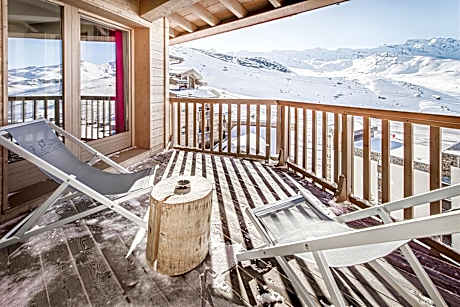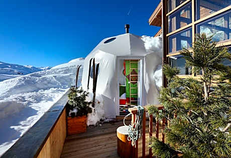 Hotel Pashmina Le Refuge is a luxury hotel located in Val Thorens Ski Resort, offering ski-to-door access to Les Trois Vallées Ski Station. Guests can relax in the 500-m² spa and wellness center and enjoy massages during their stay. WiFi is provided throughout. The spacious rooms and apartments are soundproofed and have a private balcony with mountain views and seating area. The private bathrooms come with a bath, bathrobes, slippers and free toiletries. Extras include a safety deposit box and some rooms have a flat-screen TV. The apartments and chalet have a private kitchen, equipped with an oven, stovetop, dishwasher and coffee machine. Discover inventive cuisine at Le Base Camp and Les Explorateurs restaurants, where the team of "explorer chefs" brings out the best in mountain produce. This gastronomic approach reflects the spirit of adventure: a perfect balance of flavors, harmonizing textures, all with bold creativity rooted in Alpine tradition. Embark on a unique journey through mountain flavors, guided by a duo of passionate chefs under the chef-coach of Romuald Fassenet, Meilleur Ouvrier de France. At Hotel Pashmina Le Refuge you will find a 24-hour front desk, a ski shop, a garage, a smoking lounge, a south-facing-terrace and a bar. The wellness and spa center have an indoor pool with mountain views, a sauna, an indoor and outdoor hot tub, Turkish and Nordic baths, a sensual shower, a fitness center and a solarium. A well-being expert will coach you during your stay. The property is 23 mi from Moûtiers Train Station and 71 mi from Chambéry. Grenoble is 90 mi away and Lyon is 135 mi from the property.