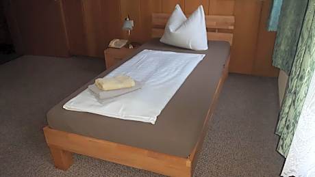Simply furnished room with satellite TV, a desk and a private bathroom with shower and hairdryer.