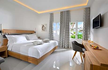 The newly renovated Hotel Petinos features accommodations just yards from Platis Gialos Beach. Mykonos Town is just a short bus ride away. Offering views of the pool, the comfortable guest rooms at Hotel Petinos are air-conditioned and elegantly appointed. Each offers a mini-fridge, TV with satellite channels and hairdryer. Some room types are located in the annex building, at a distance of 0.6 mi. The bus connecting with Mykonos Town stops right outside the hotel. Petinos Hotel offers guests transfer from/to the the port (1.9 mi away) and the airport (3.1 mi away) at extra cost. Frequent boat rides from Platis Yialos take guests to Mykonos’ famous beaches Paradise, Super Paradise, Agrari and Elia. Greek and Mediterranean dishes are served at the Blue Myth restaurant, located right on the beach. Special nights with dancing and singing are organized twice weekly.