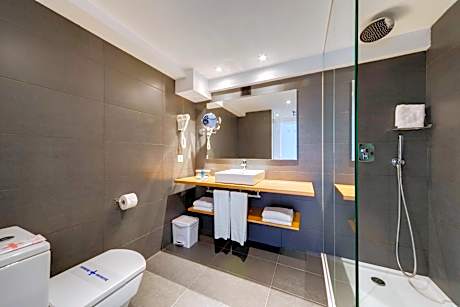 This room type is assigned at check-in and may vary. You will always have a balcony, 2 single beds or 1 double bed (queensize - small) and a private bathroom with a shower or bathtub. This room is located in one of the 3 buildings of the complex. This twin/double room has a balcony, satellite TV and air conditioning.
