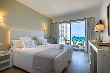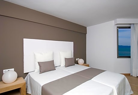 This room type is assigned at check-in and may vary. You will always have a balcony, 2 single beds or 1 double bed (queensize - small) and a private bathroom with a shower or bathtub. This room is located in one of the 3 buildings of the complex. This twin/double room has a balcony, satellite TV and air conditioning.