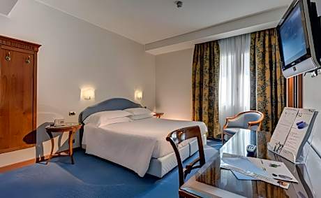 Located right in front of Mestre Train Station, Hotel Plaza offers elegant, spacious rooms with free Wi-Fi. Venice is just a 10-minute bus or train ride away. The Plaza's rooms feature classic furnishings in warm colors. Each has a fully equipped bathroom with modern shower. Some rooms feature marble bathrooms. Breakfast at the Plaza is an extensive buffet, including eggs, bacon, fresh fruit and a variety of pastries. The hotel's Soul Kitchen restaurant is open all day and features an eclectic menu of Italian and international dishes. A public bus to Marco Polo Airport stops 328 feet from the hotel, while Treviso Airport is 16 mi away.