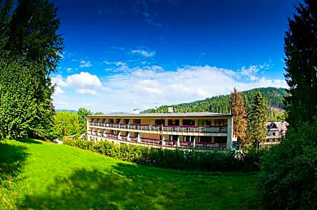 Hotel Podium – comfort, active recreation and family attractions in Wisła! Hotel Podium is a quiet and picturesque place in Wisła, ideal for sports enthusiasts, relaxation and family trips who value an intimate atmosphere and closeness to nature. We offer modern amenities, including a fitness room, free WiFi, a large and free parking lot, a barbecue shelter and a playroom for children. Our comfortable rooms have a large terrace with a view of the forest and a place to sit, a flat-screen TV, a kettle, a desk, and bathrooms are equipped with a shower, toiletries and a hairdryer. Bed linen and towels are provided. The facility offers a restaurant, a terrace, as well as the Diagnostix sports diagnostic center, a fitness room and a massage room. Breakfast is served buffet style. You can order homemade Polish dishes for lunch and dinner The hotel is pet-friendly. It provides a 24-hour reception. Guests will certainly be pleased with the proximity of hiking trails and ski elevators. There is a direct exit to the mountain trail from the hotel. Nearby there are bicycle routes, ski elevators and the Adam Małysz ski jump (1969 ft), the Ski Museum, eXtreme Park. Near the hotel there are modern swimming pool complexes, ideal for relaxation and fun.