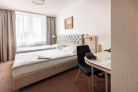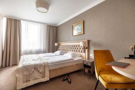 Hotel Podlasie is located in Białystok, near the city center, by the E65 national road. The hotel offers free WiFi, free private parking, a beautiful garden and convenient public transport links. All rooms include cable TV. The rooms of the Podlasie are spacious and feature a stylish interior design. All have a work desk and most include a seating area. The private bathrooms have a shower and hairdryer. There is a garden on site that guests can use too. A breakfast buffet is available in the morning. The Lipcowy Ogród restaurant serves traditional Polish and international dishes. There are 6 conference rooms can be rented on site. A large monitored parking is available for guests free of charge. There is a bus stop directly in front of the hotel. It allows guest to reach Białystok’s center within 9 minutes.