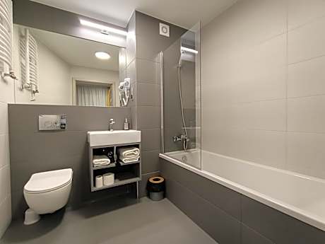 Hotel Pomorski is located on one of Bydgoszcz's main streets - Fordońska Street. This is the main exit route towards Toruń and Warsaw. It offers rooms with satellite TV and free Wi-Fi throughout the property. The rooms at the Pomorski have a private bathroom with a shower. All feature a telephone and a radio. The hotel is located 2.5 mi from the center of Bydgoszcz. Galeria Pomorska, the biggest shopping center in Bydgoszcz, is just a short drive from the Pomorski hotel. The onsite restaurant serves Italian and Polish dishes. In the morning, guests can enjoy a varied buffet breakfast.