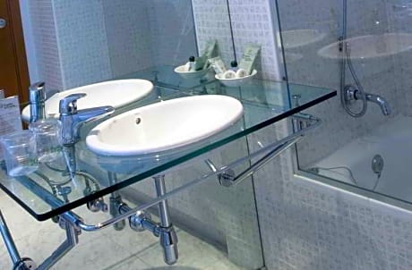 The spacious double room provides air conditioning, soundproof walls, as well as a private bathroom featuring a bath and a hairdryer. The double room offers a dining area, a safe deposit box, a sofa, parquet floors, as well as a flat-screen TV with cable channels. The unit offers 3 beds.