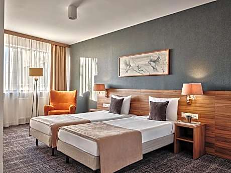 The modern, 3-star Arche Hotel Puławska Residence Warszawa is located in Warsaw, a 15-minute drive from the city center. It offers spacious rooms with a flat-screen TV with satellite channels. All rooms are decorated with warm colors and wooden furniture. Each room has a private bathroom. Most have a small kitchenette with a fridge. During their stay, guests can relax in the sauna or work out in the fitness center. Natural Therapy Center at the Arche Hotel Puławska. The treatments offered by "Uzdrowisko" are regeneration and rest for body and mind. Classic and oriental massages, rituals for the body - the treatments support a healthy life and also strengthen good energy. Staff at the 24-hour front desk can help arrange transfers. An underground parking lot is available on site for an additional fee. A buffet breakfast is served every morning in the ArcheVita restaurant, which offers Polish and international dishes. We invite you to the Green Card - excellent vegetarian dishes based only on natural ingredients! People who prefer meat dishes will find specialties from Oliwia Bernady's craft kitchen in the Red Card! In warm weather, guests can relax on the newly opened terrace in a quiet part of the hotel. Arche Hotel Puławska Residence Warszawa is a 10-minute drive from Warsaw Chopin Airport. The Stokłosy Metro Station is a 20-minute walk away. There is free public parking in front of the hotel.
