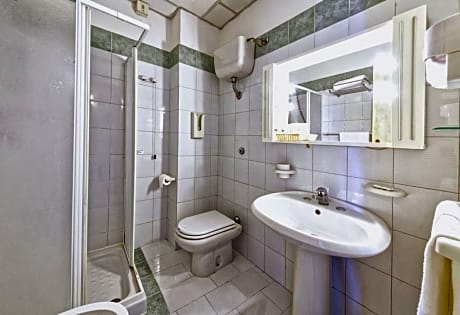 Air-conditioned room with satellite TV, a mini-bar and a private bathroom with a hairdryer.