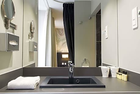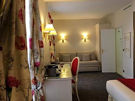 Located just 820 feet from the Galeries Lafayette department store, this hotel features a flowery courtyard. It offers guest rooms decorated in an Empire-style and free WiFi access. The air-conditioned rooms are serviced by a elevator and feature a flat-screen TV, a mini-bar and a private bathroom fitted with a bath or a shower. Some rooms at the Queen Mary Opera also have exposed beams and include an electric kettle. A buffet breakfast is served every morning and guests can enjoy cocktails in the lounge bar at hotel Queen Mary. There is a 24-hour front desk and a luggage storage at the property. The hotel is 1476 feet from Saint-Lazare Train Station, providing access to the Sacré-Coeur Basilica. Madeleine Church is only a 5-minute walk away and Opéra Garnier is a 6-minute walk from Queen Mary Opera.