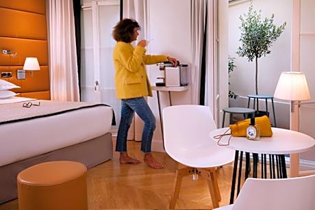 A 10-minute walk from Opéra Garnier and Moulin Rouge, Hôtel R de Paris has a 24-hour front desk, a fitness room, sauna and Turkish bath. The rooms at Hôtel R de Paris feature a flat-screen TV, iPod docking station, minibar, and the private bathrooms are complete with a shower. A buffet breakfast is available for an extra fee. Room service is available for a fee. Hôtel R de Paris has a laundry and luggage storage service, Wi-Fi is free of charge throughout the property, and St Lazare Train Station is an 8-minute walk away.