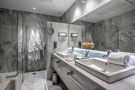This room has air conditioning, a flat-screen satellite TV and a marble bathroom including free toiletries, bathrobes and slippers.