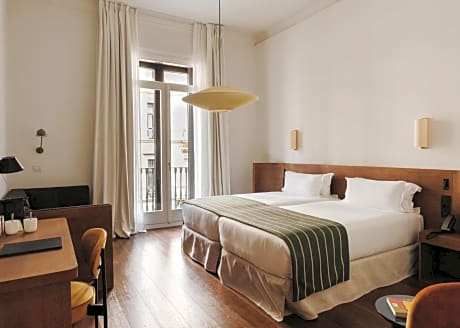 Hotel Regina Barcelona is set in a historic 19th-century building, just 164 feet from Barcelona’s Plaza Catalunya and the Ramblas. The hotel offers free high-speed WiFi and modern rooms. The century-old hotel was founded in 1917 and features beautiful architecture, including its impressive art nouveau entrance. The Hotel Regina Barcelona’s spacious rooms come with air conditioning, central heating and satellite TV. There is free tea and coffee, a safe, work desk and mini-bar. The private bathroom includes ecological cosmetics and a hairdryer. Some rooms have a balcony. A varied buffet breakfast with zero-mile and homemade products is served. There is also a bar and room service is offered all day from 07:00 to 00:00. The Regina has a 24-hour front desk and a tour desk. Gaudí’s Casa Batlló and La Pedrera, on Passeig de Gràcia Avenue, are within a 10-minute walk away. Catalunya Metro and Train Station and the airport bus stop are within 5 minutes' walk.