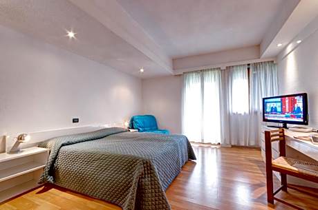 This room has mountain views. It features a TV with Sky channels, a small fridge, and air conditioning. Some have a single bed or an arm chair that becomes a bed.
