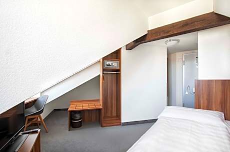 This modern room comes with free WiFi, a work desk, cable TV with more than 100 channels, a private bathroom and a single bed with a Robusta Swiss Flex mattress.