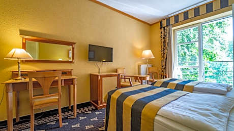 Located in Mariánské Lázně, a 11-minute walk from Colonnade by the Singing Fountain, Hotel Richard Spa & Wellness has accommodations with a fitness center, private parking, a shared lounge and a terrace. Offering a restaurant, the property also has a bar, as well as an indoor pool and a hot tub. Free WiFi is available and The Singing Fountain is a 9-minute walk away. At the hotel, rooms include a desk. The rooms have a private bathroom with a bath or shower, free toiletries and a hairdryer. All rooms at Hotel Richard Spa & Wellness come with a flat-screen TV with satellite channels and a safety deposit box. The accommodation offers a buffet or continental breakfast. Guests at Hotel Richard Spa & Wellness will be able to enjoy activities in and around Mariánské Lázně, like skiing. Speaking Czech, German and Russian, staff are always on hand to help at the reception. Castle and Chateau Bečov nad Teplou is 14 miles from the hotel, while Market Colonnade is 30 miles from the property. Karlovy Vary International Airport is 24 miles away.