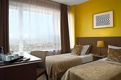 Located in the heart of Sofia, just 164 feet from Sofia’s main shopping street and within a short walk of Sedrika Metro Station, Vitosha, Rila Hotel has a bar, a modern restaurant and a 24-hour front desk. It offers spacious rooms, most with views over the city and Vitosha Mountain. Free WiFi access is offered throughout. All rooms at Rila Hotel Sofia are equipped with air conditioning, mini bar and a kettle. They all include an private bathroom with shower, while some open out to a balcony or terrace. Some units have a separate living room and bedroom. Guests can taste modern cuisine at the KOTO restaurant, while classic cocktails can be enjoyed at the Diip Bar. The famous PM Club with DJ music, cocktails and lively atmosphere is located inside the hotel. Extra services include laundry and dry cleaning, while airport shuttle can also be arranged on request and at extra charge. The National Theater Ivan Vazov and the Serdika Metro Station are both a 7-minute walk away. The Aleksander Nevsky Cathedral and the National Palace of Culture can both be reached on foot in 20 minutes.