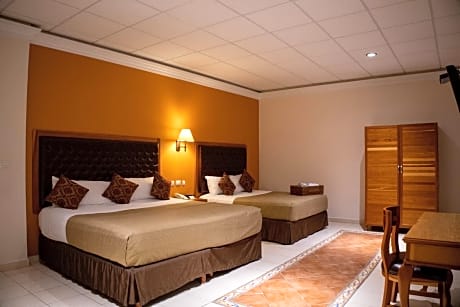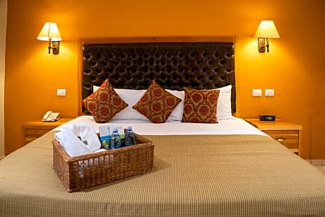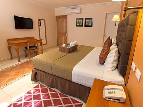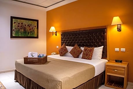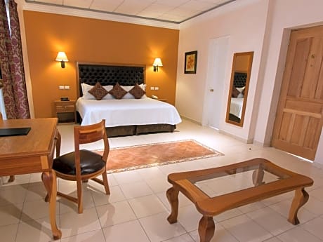 This larger suite has contemporary décor and overlooks the hotel's interior courtyard. There is a king-size bed and a seating area with a sofa. It includes free Wi-Fi, a flat-screen TV and a private bathroom.
