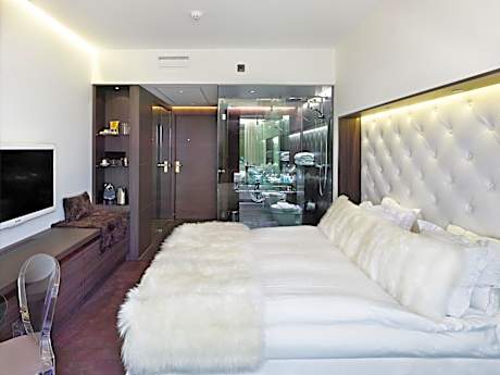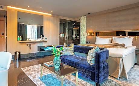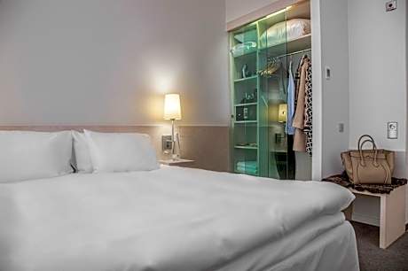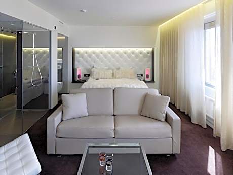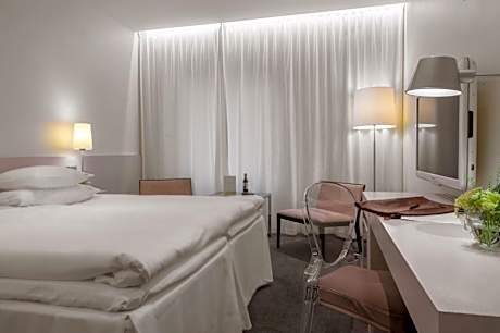 Hotel Riverton is a contemporary independent design hotel located centrally in Gothenburg by the waterfront which is fully family-owned and operated since 1991 Set between Kungsgatan shopping street and the Göta Älv River, this stylish design hotel offers a 12th-floor restaurant and Skybar. Stenpiren Station is just a 5-minute from the hotel and is connected by ferry, tram and bus. We offer four different room categories: Penthouse, Premium rooms & suites, Deluxe room & suites and Superior room & suites. All of the rooms at Hotel Riverton offer a modern flat screen HD-TVs with built-in Cromecast and a large variety of channels, air conditioning, free wifi, high quality DUX beds, bed linnen in 100% egyptian cotton, and tea/coffee facilities are standard at Hotel Riverton. Enjoy one of Hotel Rivertons award-winning cocktails in the skybar or experience the a la carte menu with spectacular views of the harbor. The restaurant and skybar is open every day of the week, including Sundays. On Fridays and Saturdays between 21:00 - 01:00 a DJ will play in the Skybar. The music is cool and conversational level but heats up as the hour gets later." after this scentance: "impressive city and harbor views can be enjoyed from the View Skybar & Restaurant The Livingroom lobbybar is open everyday of the week, including Sundays. It is an elegant and cozy bar to enjoy throughout the day, from morning coffee to an avec in the evening. On Fridays and Saturdays a DJ will host the bar and you will be able to enjoy tasty drinks, Champagne and wines to some great tunes! The music is cool and conversational level. The spa at Hotel Riverton is not included in the room rate but is available for a fee. Spa access must be booked in advance and is subject to availability. The minimum age to enter the spa facilities and pool is 18 years, or 16 years if accompanied by an adult. Complimentary Ferry to Lindholmen Science Park is provided. The historic Haga district is a 5-minute walk away. Gothenburg Central Station is a 15-minute walk from the hotel, while the city's main street, Avenyn, is 10 minutes' walk away. All energy used in the hotel comes from 100% renewable sources: wind power, hydropower and solar energy. We highly value and favor local and European high-quality products when we choose supilers for our products and amenities offered. Our bathroom products from Rituals are biodegradable and are free from microplastics and microbeads. They are also paraben-free, silicone-free, phthalate-free, SLS-free, MLT-free and are not tested on animals.
