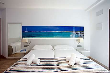 Located near the vibrant tourist area of Es Pujols, this guesthouse is just 150 meters from Es Pujols Beach and a short distance from the famed Illetas Beach. A variety of restaurants, bars, and nightclubs, along with convenient transport links, are within easy reach. San Francisco is 6 km away, and both Faro de la Mola and Faro es Cap des Berberia lighthouses are approximately 15 km away. Renovated in 2004, this two-story guesthouse offers 50 rooms, including one adapted for disabled guests. Open year-round, it features air conditioning, a reception area, an elevator, a café-bar (open all day), and a restaurant/dining room serving lunch and dinner, complete with a smoking area and highchairs. Bicycle storage is also available. Each room has an en suite bathroom with a hairdryer, direct-dial telephone, satellite TV, individually controlled heating and air conditioning, a safe for rent, and a balcony (most rooms) or terrace with views. Sun loungers and parasols are available on the beach for a fee. Guests can enjoy a buffet breakfast and dinner, while lunch offers both menu and à la carte options. Dinner is also available à la carte. Bed and breakfast and half-board stays can be booked.