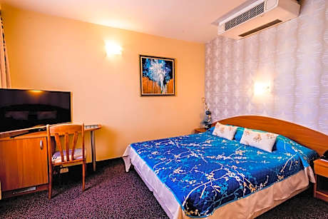 Hotel Rostov is located in the center of Pleven. It offers nicely equipped rooms with panoramic views and free WiFi. The rooms at the Rostov are all air-conditioned, a TV with cable channels and a seating area. The bathroom comes with a shower and free toiletries. The entertainment options on site include a night club, a casino and a lobby bar. Hotel Rostov features a restaurant, offering author cuisine, as well as popular international dishes, complemented by a wide selection of wines. A spacious Bar&Diner summer garden is at guests' disposal. A grocery shop can be reached within 66 feet from the hotel. Conveniently located close to the lively city center, Hotel Rostov is set a 5-minute walk from restaurants, cafeterias and bars. Kaylaka Park is set 2.5 mi away.