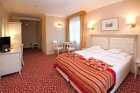 Hotel Royal Baltic Luxury Boutique is located only 492 feet from the beach in Ustka seaside resort. It offers elegant interiors, spa facilities and free Wi-Fi in the hall and restaurant. All rooms at the Royal Baltic are bright and decorated with warm, golden and red colors. Each comes with a flat-screen TV with cable and satellite channels. Some feature a balcony overlooking the pine forest. A varied buffet breakfast is served at the hotel’s stylish restaurant, which specializes in Mediterranean and Polish dishes. The hotel bar offers a selection of cocktails and drinks. Front desk staff is available 24 hours a day and can assist with luggage storage or laundry services. Guests can relax in a sauna or try one of available massage treatments. The Hotel Royal Baltic Luxury Boutique is located within a 5-minute drive from Ustka center.