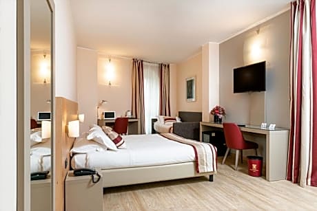 Set in an elegant historic building in the center of Monza, the charming Royal Falcone offers large, modern rooms and free Wi-Fi throughout. A scheduled shuttle to/from Malpensa and Bergamo airports is available on request. Located at the beginning of the pedestrian area, this boutique 4-star hotel is 328 feet from the train station with direct links to Milan city center, Rho Exhibition Center and San Siro Football Stadium. A garage is available on site, and accessed from Via Caduti del Lavoro. All air conditioned, the rooms feature a 20" flat-screen LCD TV with Sky channels and a mini-bar. Soft slippers are provided. Breakfast includes fresh fruit, different kinds of bread, cakes and croissants. The Autodromo Nazionale Monza race track is 2.5 mi from the Hotel Royal Falcone. Numerous shops, cafes and restaurants are within a few steps of the hotel.