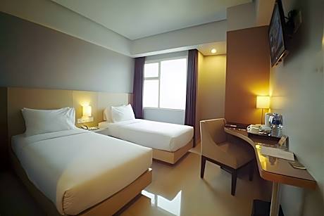 Experience an abundance of unparalleled facilities and features at Hotel Santika Depok. Maintain seamless communication using the complimentary Wi-Fi at hotel.Discovering Depok becomes even more accessible, thanks to the taxi amenities provided at the hotel. For visitors traveling by automobile, complimentary parking is available. During your stay at this fantastic hotel, the attentive front desk personnel can provide you with a range of amenities such as concierge service, express check-in or check-out, luggage storage and safety deposit boxes. At the hotel, utilize the on-site dry cleaning service and laundry service to maintain your beloved travel attire fresh, allowing you to bring fewer clothes. Craving relaxation? Make the most of your stay at the Hotel Santika Depok with convenient amenities like room service and daily housekeeping at your disposal.For visitors wishing to smoke, designated smoking zones can be found. At Hotel Santika Depok, every guestroom is provided with convenient amenities and fittings to ensure a comfortable stay. Enhance your experience at hotel with the knowledge that certain rooms are equipped with linen service, blackout curtains and air conditioning for your convenience. Certain rooms boast in-room amusement features such as daily newspaper, television and cable TV, offering guests an enjoyable stay. In select rooms within the hotel, a refrigerator, bottled water, a coffee or tea maker and mini bar is available to cater to your requirements when desired.In the hotel, certain guest bathrooms come equipped with essential bathroom amenities, such as a hair dryer, toiletries and bathrobes, ensuring a comfortable stay for guests. Begin your day with a scrumptious on-site breakfast available each morning at Hotel Santika Depok. At the hotel, an assortment of easily accessible and delicious meal choices are available to satisfy your appetite whenever it strikes. During your stay at hotel, an array of engaging activities and amenities guarantees a delightful experience. Conclude your holiday experience perfectly by visiting spa before you depart. Be sure to drop by the pool at hotel at least once during your stay. Discover the fitness amenities at hotel to maintain your health and strength during your getaway.