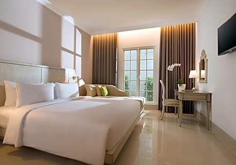 Great care is taken to ensure guests experience comfort through top-notch services and amenities.Remain linked during your visit by utilizing the complimentary internet access available.Prior to your check-in date, you can arrange airport transportation services, guaranteeing a seamless and efficient experience for both arrival and departure. Services offered by taxi and car hire at the hotel ensure effortless exploration of Bali. The hotel offers complimentary parking for guests who arrive with their own mode of transport. Effortlessly plan your daily activities and travel requirements with luggage storage and safety deposit boxes provided by the front desk services.For extended visits or whenever required, the dry cleaning service and laundry service ensures your preferred travel garments remain clean and accessible. During leisurely days and evenings, in-room amenities such as 24-hour room service, room service and daily housekeeping enable you to maximize your stay in the room. In limited designated zones, smoking is exclusively permitted. Crafted for coziness, every guestroom provides an array of features, guaranteeing a tranquil night's sleep while maintaining the level of comfort.For a more enjoyable stay, select rooms at hotel are equipped with linen service, blackout curtains and air conditioning.At Hotel Santika Seminyak, a selection of rooms can be found that showcase unique design elements such as a balcony or terrace. For certain chosen rooms, guests can enjoy in-room amusement like television and cable TV as a part of their stay. Rest assured that your hydration needs will be met, as some guestrooms are equipped with a refrigerator, bottled water, a coffee or tea maker, instant coffee, instant tea and mini bar.It is worth noting that certain guest bathrooms feature a hair dryer, toiletries and bathrobes for your convenience. Each morning at Hotel Santika Seminyak, a scrumptious, homemade breakfast kick-starts the day.Begin your holiday mornings right with your essential cup of coffee, offered daily at the cafe on-site.During your visit, indulge in a range of delightful culinary choices at hotel to enhance your experience. Hotel Santika Seminyak provides a superb assortment of leisure amenities for guests to enjoy.Treat and spoil yourself by stopping at massage and spa for a memorable experience. Begin your holiday perfectly by taking a plunge into the swimming pool.