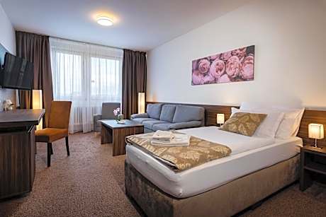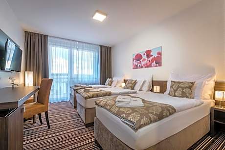 Set in Poprad, only a 10-minute drive from the High Tatras, Hotel SATEL offers rooms and apartments. Free WiFi is available throughout the property. Rooms feature an array of amenities including a LED TV with international channels, a small fridge and a hair dryer. A breakfast buffet is available daily. The town center and the Forum Shopping Center are located only a 5-minute walk away and the hotel is set less than 10 minutes' walk from the famous water park AquaCity, MAX shopping center with bowling, and the Poprad Arena sports hall. The hockey and football stadium is a 15-minute walk from Hotel SATEL, and the railway and the bus station are a 5-minute walk away.