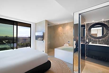 Guests will have a special experience as this suite provides a rooftop pool, a hot tub and a spa bath. This suite is consisted of of 1 living room, 1 separate bedroom and 1 bathroom with a shower and free toiletries. The air-conditioned suite offers a flat-screen TV, soundproof walls, a mini-bar, a wardrobe as well as mountain views. The unit offers 1 bed.