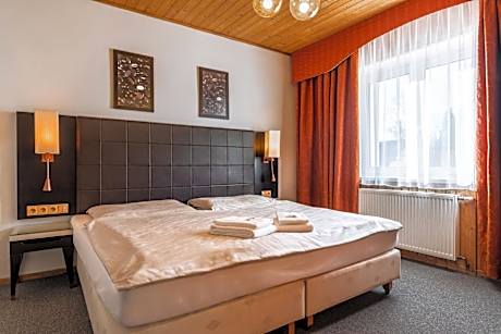 Located in Nové Hamry, 14 miles from Fichtelberg, Hotel Schwarz has accommodations with a garden, free private parking, a shared lounge and a terrace. The property provides a ski pass sales point, as well as a restaurant and ski-to-door access. Some rooms at the property feature a balcony with a garden view. At the hotel, all rooms include a closet and a flat-screen TV. Featuring a private bathroom with a shower and free toiletries, rooms at Hotel Schwarz also have free WiFi, while some have a city view. All rooms at the accommodation come with a seating area. A buffet breakfast is available at Hotel Schwarz. The hotel offers 3-star accommodations with an indoor pool, sauna and hot tub. Guests at Hotel Schwarz will be able to enjoy activities in and around Nové Hamry, like skiing. Market Colonnade is 15 miles from the accommodation, while Mill Colonnade is 15 miles from the property. Karlovy Vary International Airport is 19 miles away.