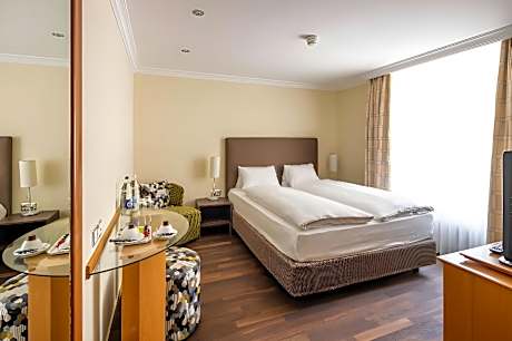 The 4-star Hotel Seeburg is located on the shore of Lake Lucerne, 1.9 mi away from the city center. It offers a picturesque view of the mountains and the lake. Our freshly renovated rooms invite you to enjoy a relaxing city vacation in the vicinity of various attractions in Central Switzerland. Relish in the spectacular views while sipping tasty drinks and eating delicious food at our Sunset Bar on the other side of the road. Hotel guests receive a free public transport ticket for Lucerne upon arrival. This ticket is valid for all busses and trains within ticket zone 10 in 2nd class throughout the complete stay, including arrival and departure day.