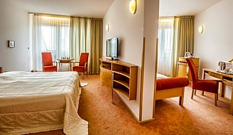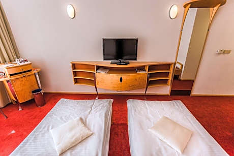 Hotel SET welcomes you to Bratislava’s Nové Mesto, perfectly located near major sports venues like the National Tennis Center (NTC), Tehelné Pole Football Stadium, Ondrej Nepela Ice Hockey Stadium, and JAMA sport park—all within a 100-656 foot radius. Vivo! and Centrál shopping centers are just 1969 feet away, and the lively city center is only a 10-minute drive. Our air-conditioned rooms offer free WiFi, cable TV, a work desk, ironing facilities, and a bathroom with a hairdryer; most rooms feature a private balcony or terrace. Begin your day with our breakfast buffet and enjoy Slovak cuisine Lunch on our restaurant’s open-air terrace. Easily reach the city center via the nearby Česká tram stop, which is a quick 15-minute ride away. For your convenience, we offer nearby paid public parking and an on-site NTC private garage.