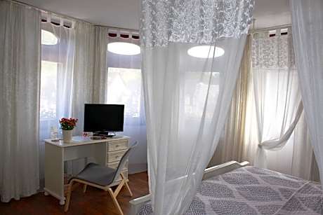 This romantic decorated room offers a mini-bar, safety deposit box and a work desk. It also offers a flat-screen TV and free Wi-Fi.