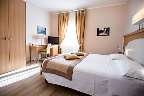 Facing the old town and marina, Hotel Sirmione Terme consists of 2 buildings facing Lake Garda and is set in the historical center of Sirmione. The property features a spa and rooms overlooking the marina or the Scaliger Castle. Desenzano del Garda is 6.2 mi away. Guests can unwind in the outdoor thermal lake-view pool. The free wellness facilities include a Finnish sauna, water path with sensory showers, a relaxation zone, and a hot tub. All rooms are air conditioned and feature an LCD TV plus Wi-Fi access. The private bathroom includes a hairdryer and free toiletries. The renowned Dei Poeti restaurant serves delicious regional specialties on a panoramic terrace with views of the lake. The hotel is in a restricted-traffic area.