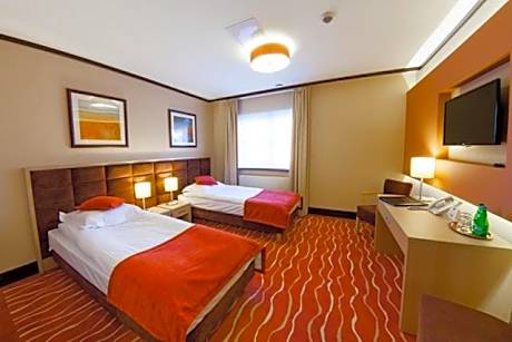 Hotel Skarbek is located in Lubin, 0.9 mi from the national road number 3. It offers its guests a 24-hour front desk, free access to a fitness center and free Wi-Fi. The rooms are air-conditioned and classically decorated in warm shades of brown. Featuring a shower, the private bathrooms also come with towels and a hairdryer. Extras include a desk and a flat-screen TV. The on-site restaurant features interiors styled on 18th century inn, and specializes in Old Polish cuisine. At Hotel Skarbek you will find also find a sauna. Skarbek is 1.2 mi from the city center and the Lubin Airport. The Cuprum Arena Shopping Center is 1.9 mi away.