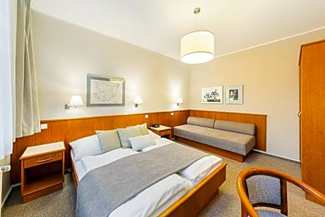 The Sněžka hotel with its charming architecture belongs to the most remarkable buildings in Špindlerův Mlýn, located about 656 feet from the town center. Enjoy marvelous views of the Giant Mountains towards the slopes of the Medvědín. During the summer months, guests can enjoy a complimentary daily cable car ticket to Sv. Petr or Medvědín. This is an ideal place both for winter as well as for summer holidays, offering easy access to the slopes and to wonderful hiking and biking paths. Guests can enjoy on-site spa facilities for free in case of staying for 2 and more nights. Prior reservation is needed. Wireless internet access is available. The Sněžka hotel features luxurious rooms, a lobby bar and a restaurant with a terrace offering fine local and Czech cuisine.
