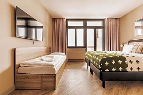 Providing free toiletries and bathrobes, this triple room includes a private bathroom with a walk-in shower, a hairdryer and slippers. The triple room provides a coffee machine, a wardrobe, a safe deposit box, a sofa and a flat-screen TV. The unit offers 2 beds.