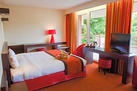 On the shores of Lake Bagnoles de l'Orne, near the casino and shopping, the hotel provides relaxing accommodations in a peaceful environment. Hôtel Du Béryl features cozy and comfortable rooms and suites with delightful views of the lake or forest. Bathrobes are available for an additional fee. On the first floor of the hotel guests find a balneotherapy area dedicated to beauty and health treatments.The Beryl also offers the first Fish Spa in the region: a fun and effective beauty treatment with small fish. The restaurant, La Pommeraie, serves seasonal and refined traditional cuisine in a lovely panoramic dining room. Guests are entitled to free access to the swimming pool, sauna, hammam and hot tub.