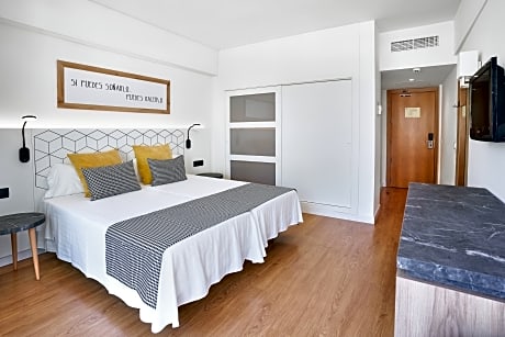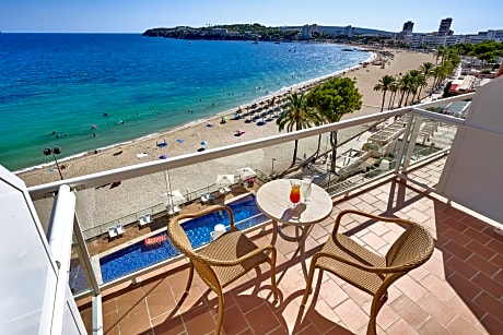 Perfectly located in the heart of the well-known holiday resort of Magaluf, the hotel has direct access to the sandy beach and is only 200 m away from the beach of Palmanova. Guests will find a plethora of pubs, bars, restaurants, shops and entertainment venues in the vicinity. The centre of Palma is easily reachable by public transport. The airport is about 28 km away. The hotel offers 205 spacious rooms, equipped with air conditioning and a private bathroom. Guests can enjoy at the restaurant with marvellous sea views, and the bar at a terrace with panoramic views over the bay. The hotel offers a wide range of services for guests' relaxation such as a beachside pool, hot tubs, spa area with sauna, gym and various beach activities. All inclusive: this board includes breakfast, lunch, snacks, dinner in the restaurant, local self-service drinks from 11. 00 am to 11. 00 pm and label drinks with 50% discount. **Includes all meal services with drinks. It also includes drinks in the cafeteria during the opening times and according to the menus. Alcoholic drinks (local brands) are limited to 3 consumptions per lunch and dinner services. (Actual official law).