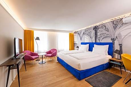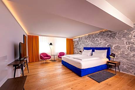 Located on the banks of the Salzach River, in the center of Salzburg, the Hotel Stein has a history dating back to medieval times and was fully renovated and reopened in the spring of 2018. The lifestyle and design hotel offers guests a panoramic rooftop terrace with views over the rooftops and the surroundings. Rooms at the Hotel Stein show a mixture of modern and classical style, with Austrian and Venetian influences. The luxurious rooms all have air conditioning, a unique furnishing and handcrafted glass decorations or lamps. The bathrooms are equipped with natural beauty products made from herbal ingredients in pharmacy quality. The restaurant Steinterrasse is located on the 7th floor and offers a view of the old town of Salzburg. Guests can enjoy a breakfast, brunch or fine dining on the rooftop terrace, and enjoy exquisite drinks and dishes. Hotel Stein's own spa area can be used against a surcharge and features a relaxation area, sauna and gym. Guides are provided in the rooms with running, hiking and Nordic walking routes. Only 230 feet from the property, the well known Linzergasse starts, where a variety of shops can be found. Cultural landmarks like Mozart's Birthplace, Salzburg Cathedral, the Mirabell Garden and Hohensalzburg Fortress are all within short walking distance to Hotel Stein.