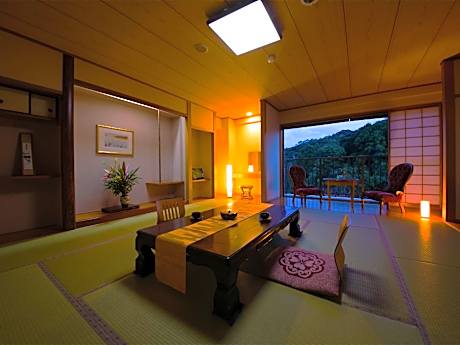 The double room includes a private bathroom, well-fitted with a bath, a shower, a bidet, a hairdryer and slippers. The air-conditioned double room provides a flat-screen TV with streaming services, an electric kettle, a sofa, yukata as well as garden views. The unit offers 1 bed.