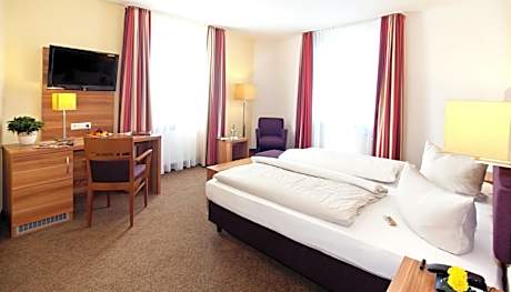 This traditional, 3-star hotel is located in the heart of Hof, just a 10-minute walk from the main train station, and offers comfortable accommodations with a flat-screen TV and free Wi-Fi. Look forward to comfortably furnished, well-equipped rooms and apartments at the Hotel Strauss. A delicious, complimentary breakfast buffet is provided each morning, and half and full-board options are also available. The attractive, cozy restaurant serves a wide range of excellent Franconian, Bavarian and international specialties, which you can enjoy outside on the terrace in fine weather. Guests traveling by car will appreciate the free, on-site parking available at the Hotel Strauss. The A9, A72 and A93 motorways are within a 10-minute drive.