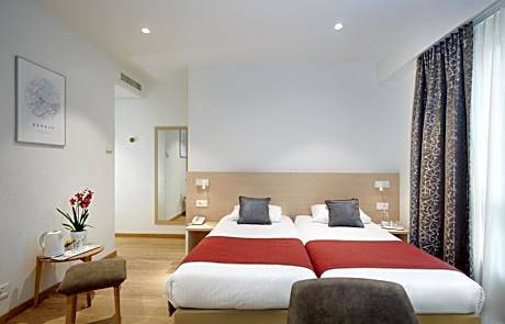 Right opposite the Geneva Main Railway Station with quick and easy train connections to Geneva Airport and the United Nations Office, Hotel Suisse offers you rooms with attached bathroom with free WiFi and a rich buffet breakfast. On foot, Lake Geneva can be reached in just 5 minutes and the Old Town in 7 minutes. All rooms are equipped with a flat-screen TV, a safe, a mini-bar, a radio and a telephone. Air-conditioning is available during the summer months. An internet workstation with a printer is available in the lobby. On arrival, you will receive a free pass for public transport in Geneva for the entire length of your stay. The property is only 164 feet from public transport stops for frequent busses, trams and trains to all parts of the city. Cornavin Parking, where guests get discounted parking fees, is just 164 feet away. It takes about 15 minutes to get to the International Airport, the Palexpo Exhibition Center and the International Conference Center.
