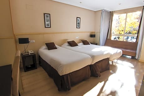 This modern hotel is located in Madrid’s Arturo Soria neighborhood, just 5 minutes’ drive from the IFEMA Trade Fair. It offers a 24-hour reception, and a bar with terrace. Each bright, spacious room at Hotel Suites Feria de Madrid has a functional design and air conditioning. Rooms include a TV, mini-bar and a private bathroom with amenities and a hairdryer. Less than 0.6 mi from the Hotel Suites Feria de Madrid, the Palacio de Hielo Shopping Center includes restaurants and an ice skating rink. Madrid Barajas Airport and Real Madrid’s Santiago Bernabeu Stadium are within a 15-minute drive. Esperanza Metro Station is only 984 feet from the Hotel Suites Feria de Madrid. Regular bus services to the city center also stop nearby.