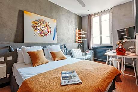 Our "Double Rooms Mansardé" are accessible only by the stairs on the 4th floor. However, an elevator allows you to go to the 3rd floor. These rooms are under the roof and will not always be suitable for tall people. Their charm, their refined decoration and their equipment will make you spend excellent stays. For your comfort, you will spend a charming night in a double bed of 160x200 and you will have a private bathroom with a shower and free toiletries (shower gel, shampoo and towels). There is a television, desk and storage at your disposal. For more information on those rooms, please contact the reception of Hotel Taggât, open 24/7.