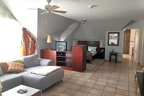 Bright and quiet room featuring a comfortable seating area, free Wi-Fi and a bathroom with a shower.