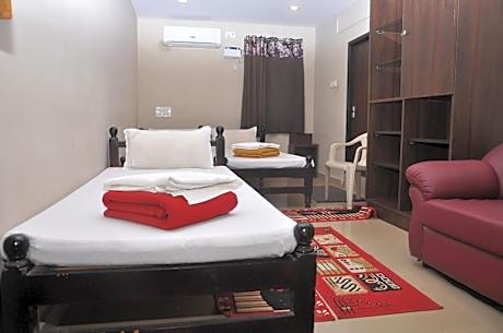 HOTEL TEMPLE CITY provides flawless service and all the necessary facilities for visitors.Stay connected with your associates, as complimentary Wi-Fi is available during your entire visit.The hotel offers taxi amenities to assist you in discovering your desired offerings in Kumbakonam. When arriving by car, you'll be grateful for the on-site complimentary parking at hotel. Whether you're here for an extended stay or simply require fresh garments, the hotel ensures your cherished travel attire remains spotless and accessible with the convenience of laundry service located on the premises.The hotel's daily housekeeping ensures an excellent option for your stay. Smoking is permitted solely in the specified smoking zones allocated by hotel.In order to ensure the utmost level of relaxation, the guestrooms feature an inviting design and are equipped with all basic necessities, creating a delightful stay experience. To ensure a pleasant stay, a selection of rooms at hotel come furnished with linen service and air conditioning, all designed with your ease in mind. In select rooms, visitors can enjoy a touch of amusement with the availability of daily newspaper and cable TV for their entertainment needs.Rest assured, quenching your thirst is not a concern with bottled water available in select accommodations.Understanding the significance of bathroom facilities in enhancing visitor contentment, hotel offers a hair dryer, toiletries and towels within a few chosen chambers.